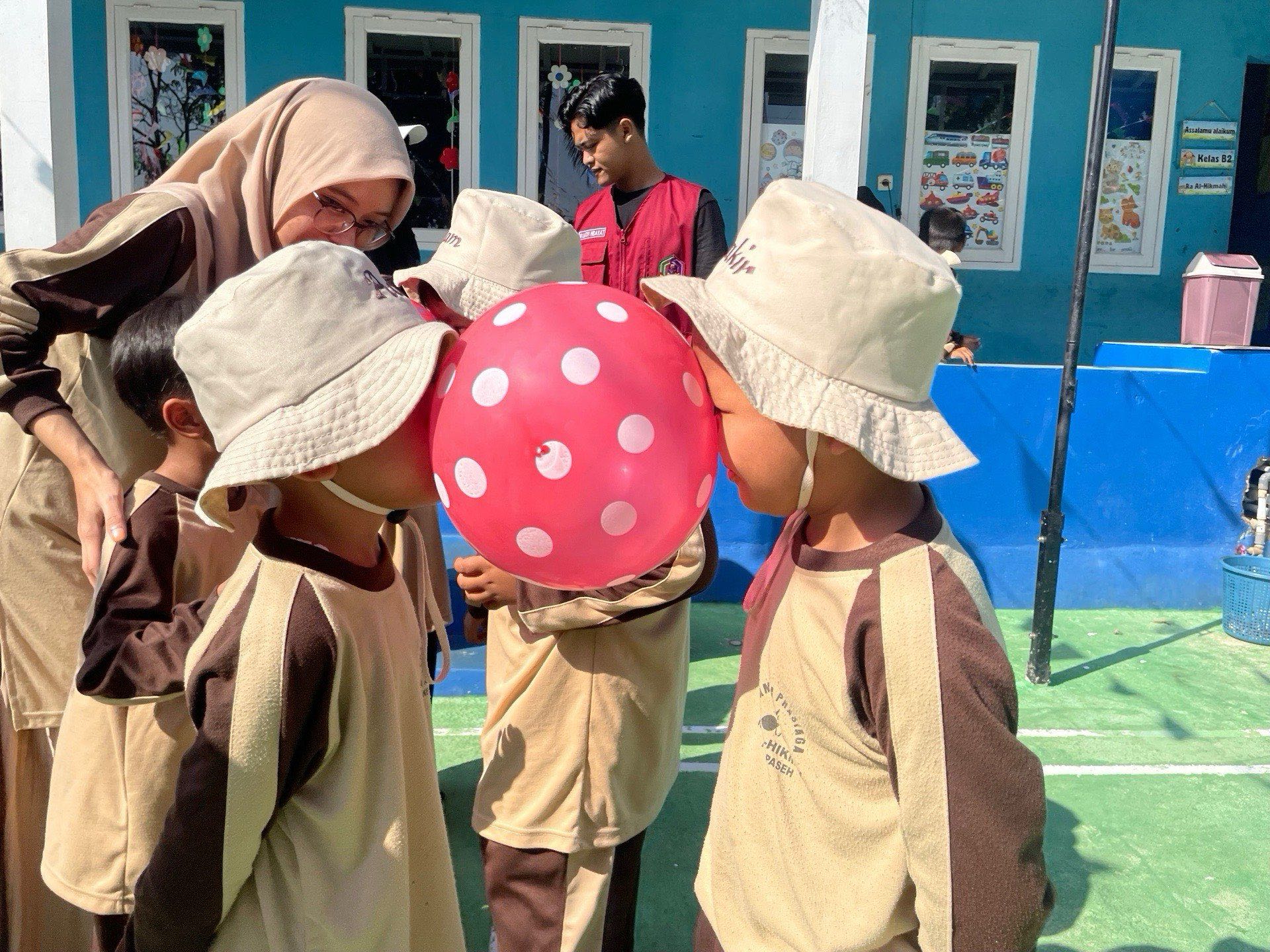 Kemudian, setelah selesai senam, kami pergi ke RA Al-Hikmah untuk melakukan perpisahan setelah seminggu mengajar. Untuk kegiatannya sendiri, pertama-tama kami melakukan senam pagi bersama murid RA Al-Hikmah, dilanjut bermain bersama, diantaranya bermain joget balon, bermain meniup animasi dari origami, mewarnai dan juga menghubugkan garis. Sebelum istirahat kami berfoto bersama untuk kenang-kenangan dan penyerahan sertifikat dari KKN 106 Desa Cijagra ke RA Al-Hikmah.