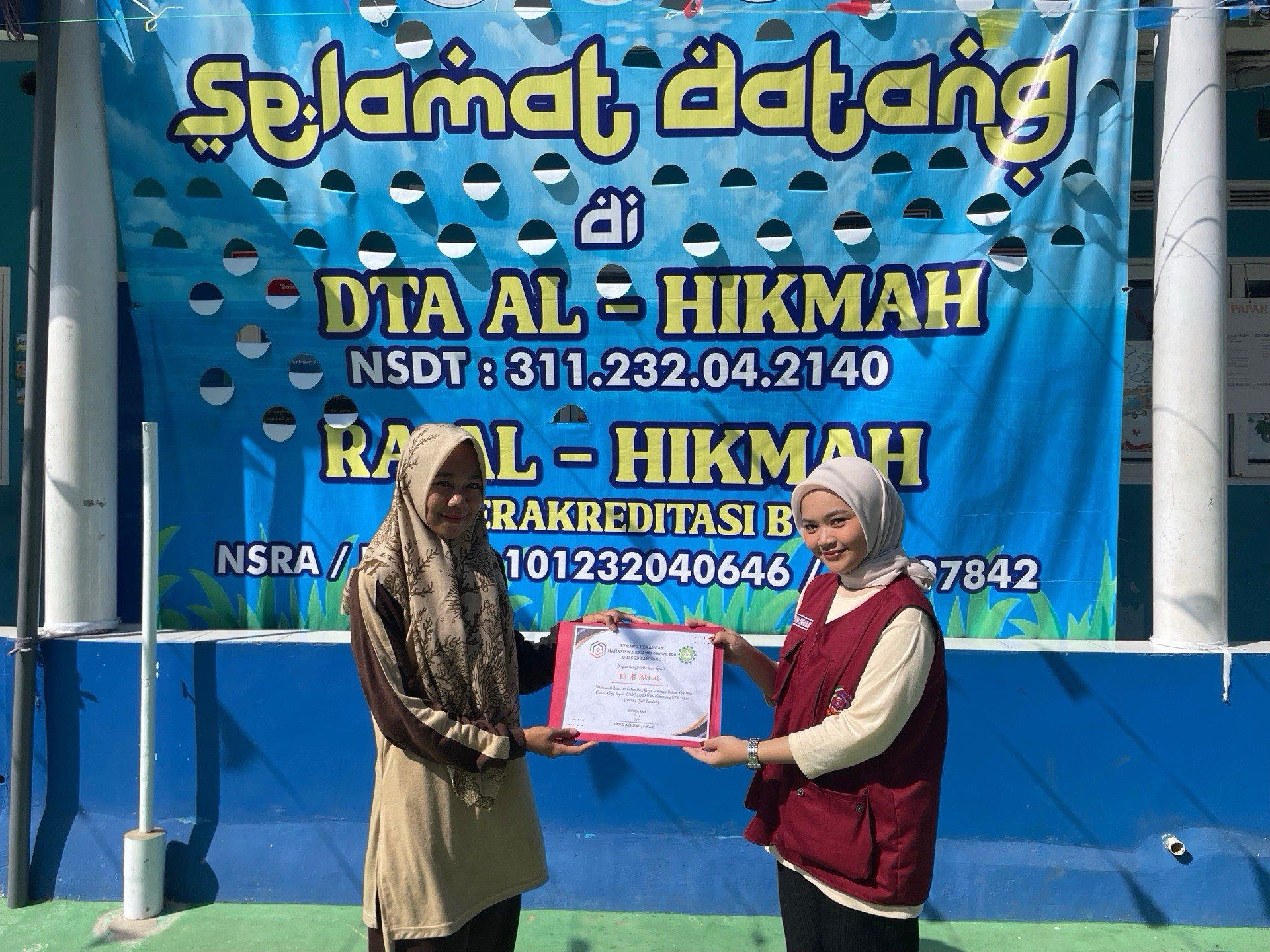 Pada pukul 15.30 kami juga pergi ke DTA Al-Hikmah untuk melakukan perpisahan dan penyerahan sertifikat.