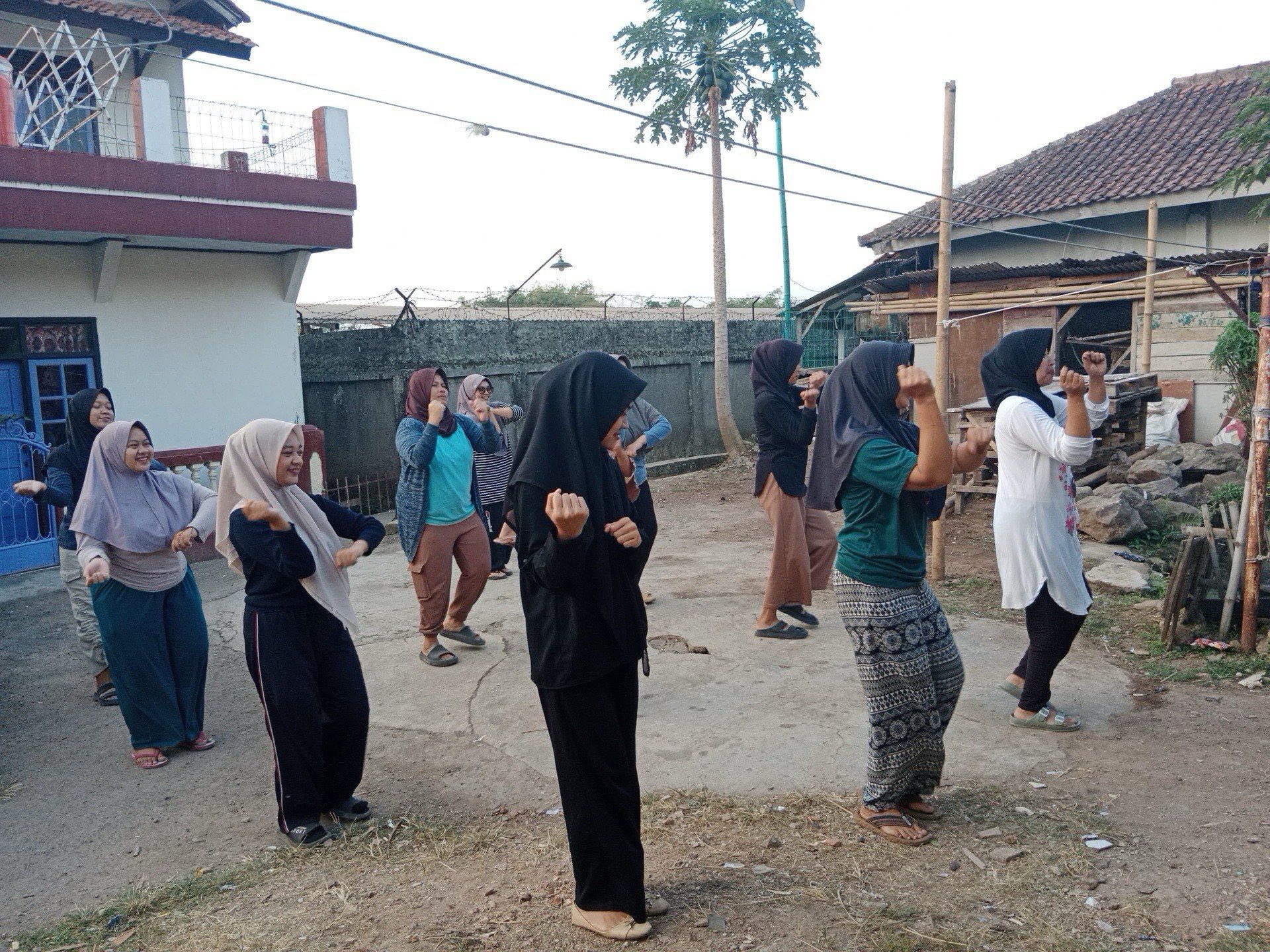 Sekitar pukul 16.30 kami didatangi oleh ibu-ibu PKK RW 04 yang mengajak kami untuk ikut serta berlatih senam untuk perlombaan senam antar RW yang akan dilaksanakan tanggal 18 Agustus di Desa Cijagra. Kami berlatih kurang lebih selama satu jam sampai dengan pukul 17.30.